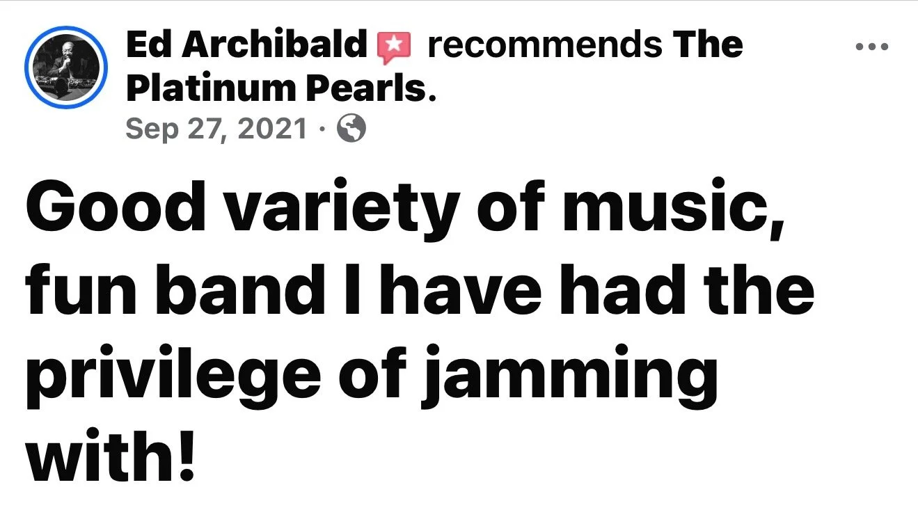 Meet Benjamin, he brings over 30 years of drumming experience to the band. He has a unique, high energy style of drumming that makes you take notice. He keeps The Platinum Pearls in time and on point.
